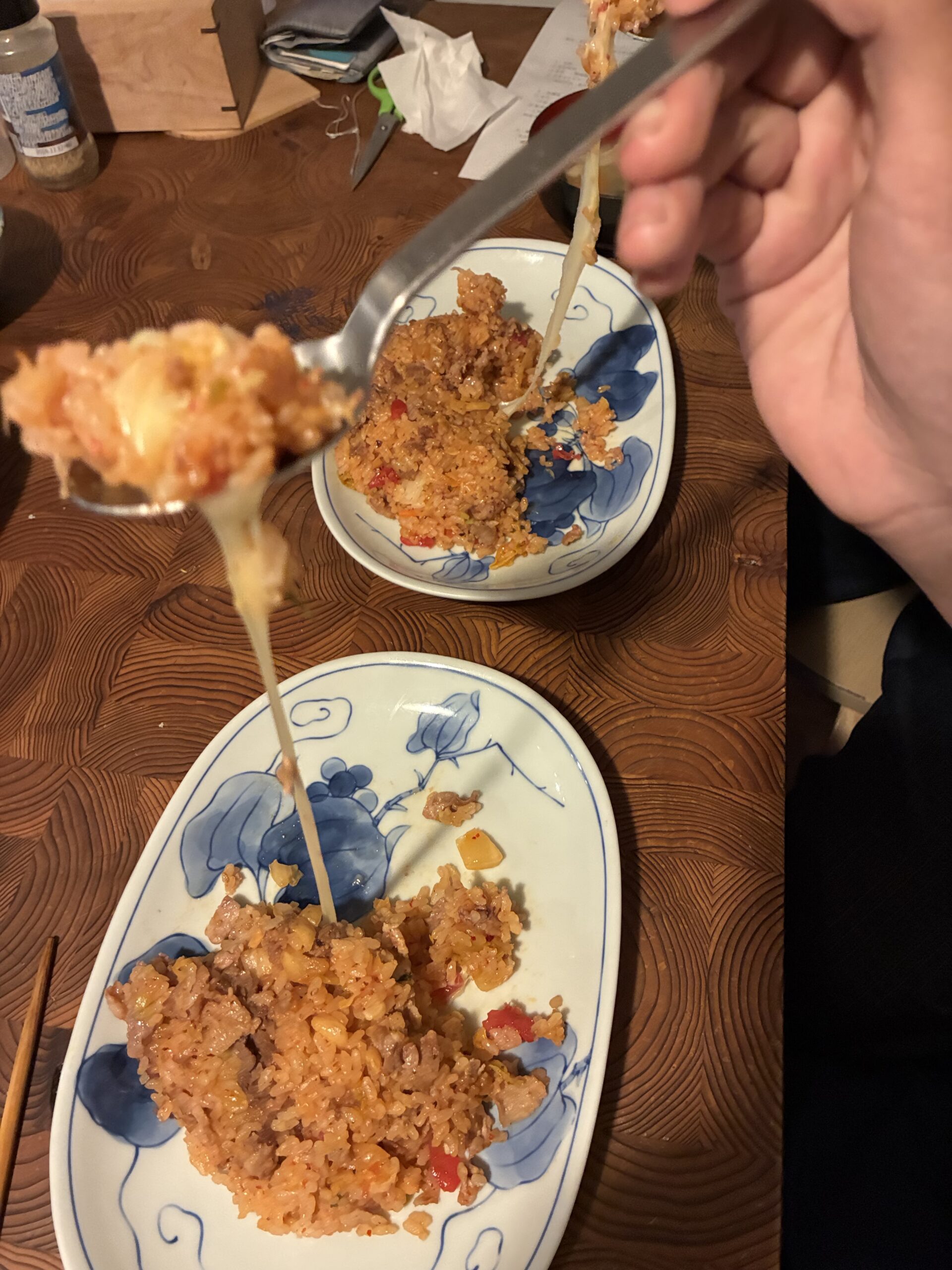 そして今日の密かな楽しみ、とろけるチーズをたっぷりと。ごはんの真ん中を少し窪ませて、そこへ隠すように。ごはんの熱でじんわりと溶けていくのを待つ、このひとときがたまりません。